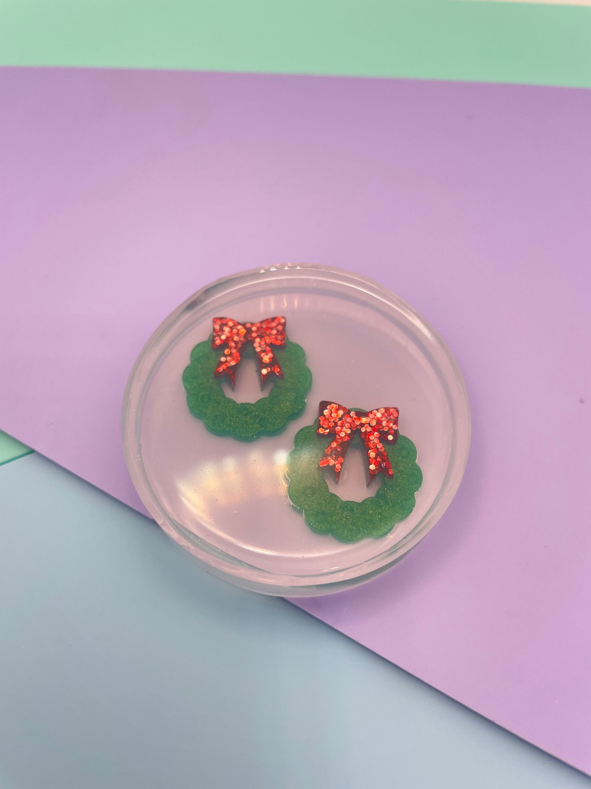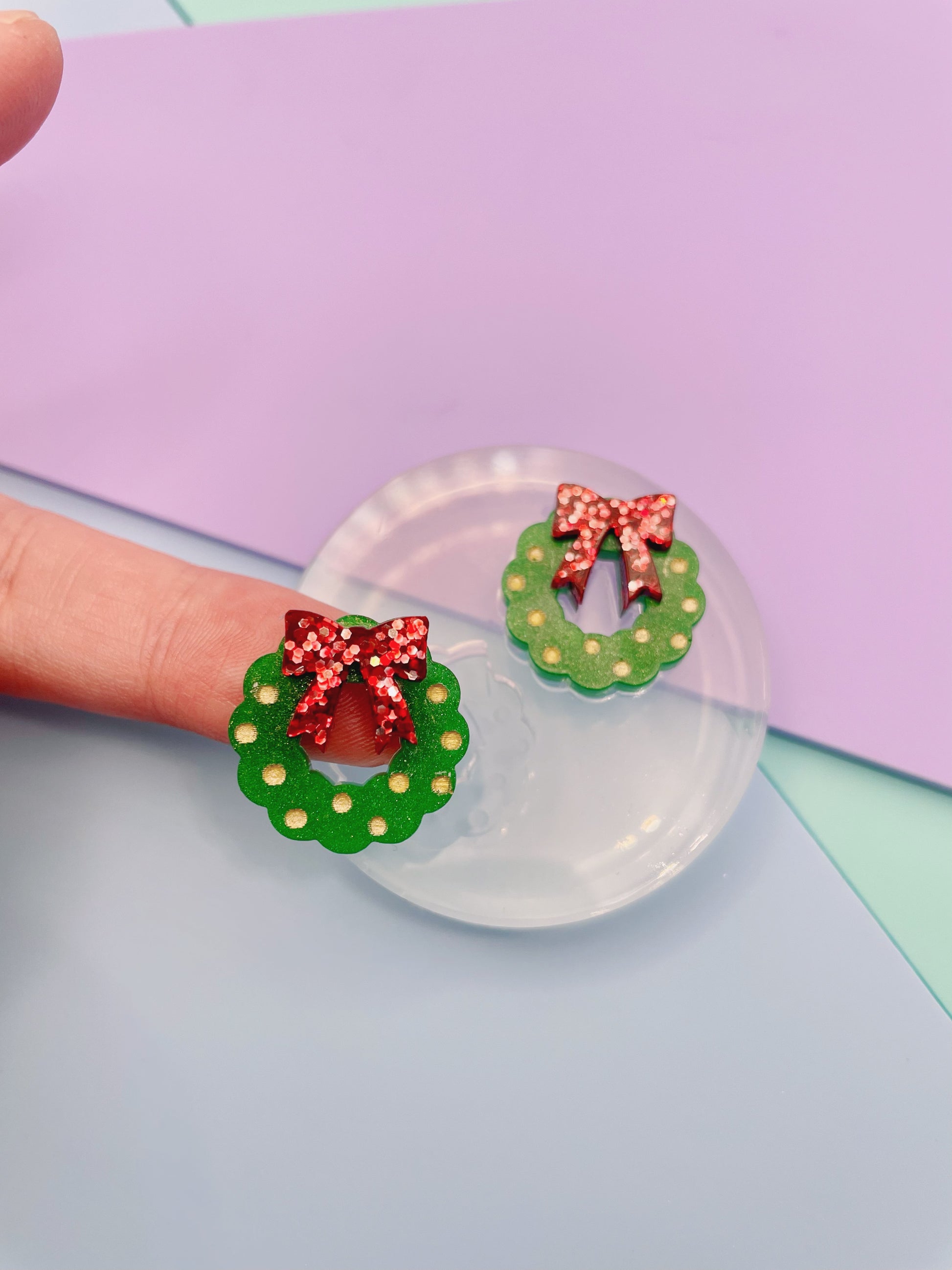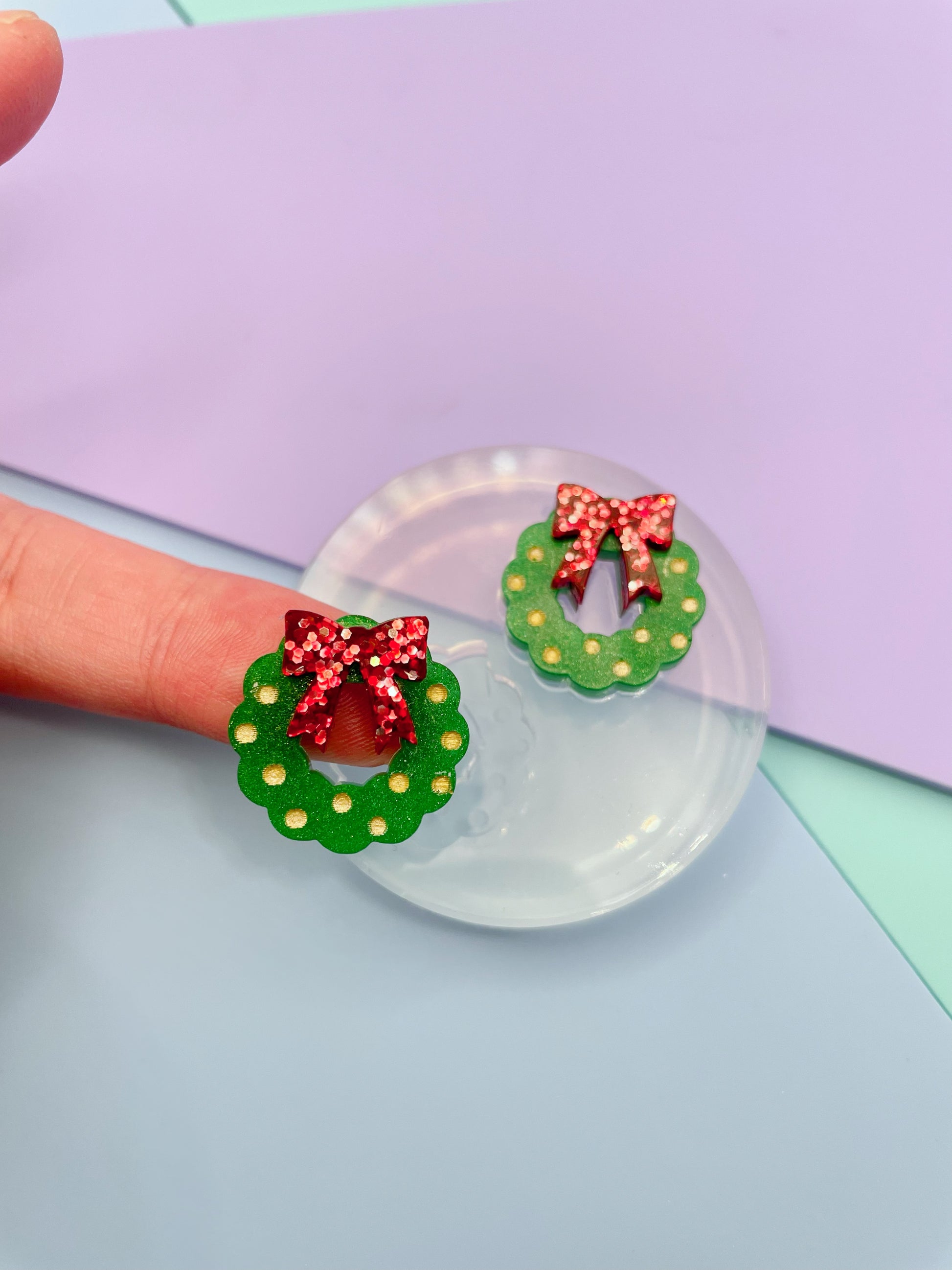 Small Christmas Wreath with Ribbon Bow Stud Earring Mold
