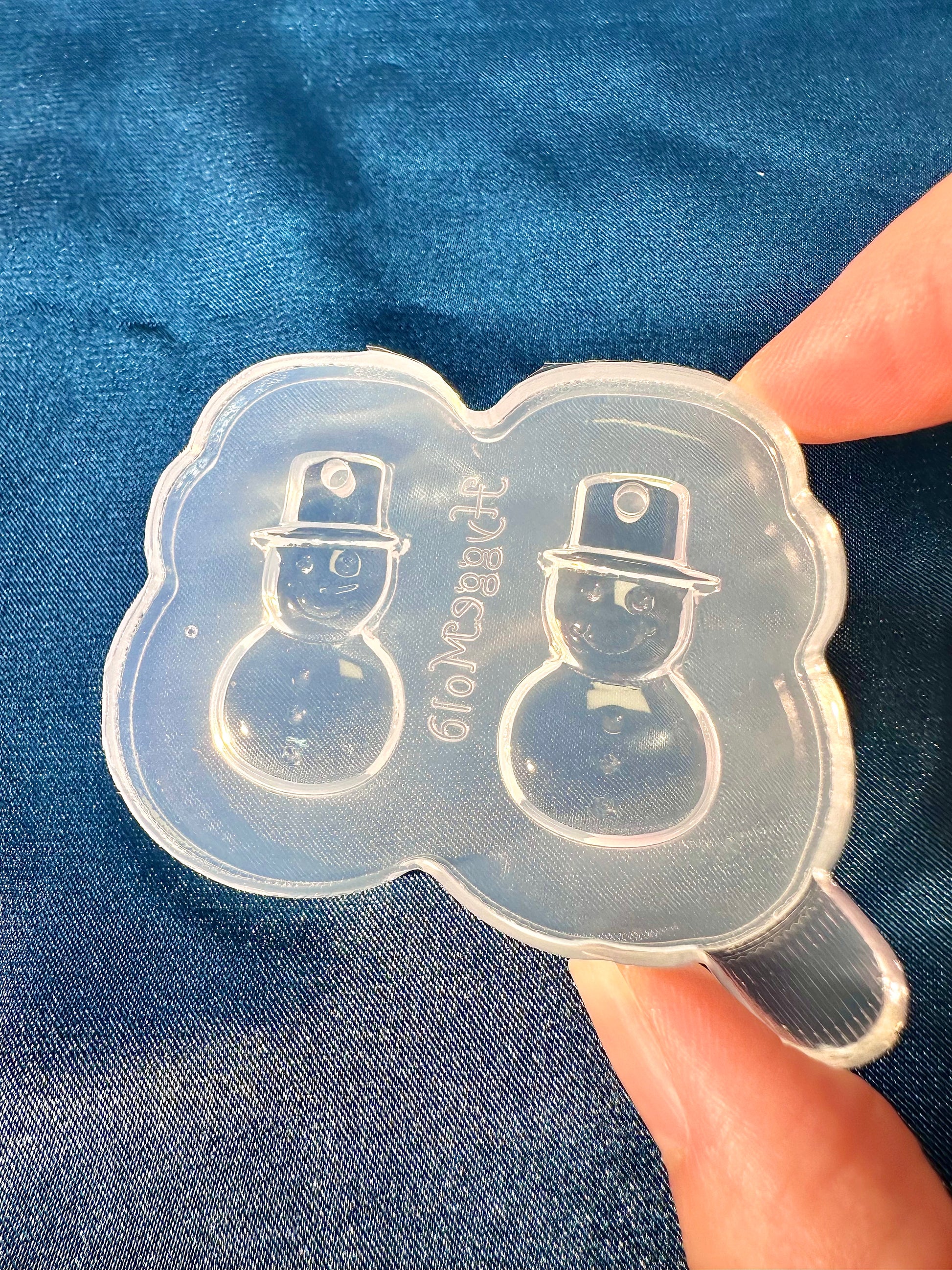 Design festive earrings effortlessly with the Small Predomed Snowman Dangle Earring Mold for resin and more. At 3.2 cm long with a glossy finish, it features large holes for easy fitting with Stella Hoops and etched details for a charming, polished look. Perfect for creating standout winter jewelry. The etching is shallow so it needs more patience to get it right. Avoid using a wet cloth - simply scrape off excess paint gently. Topcoat with uv resin to protect the paint.