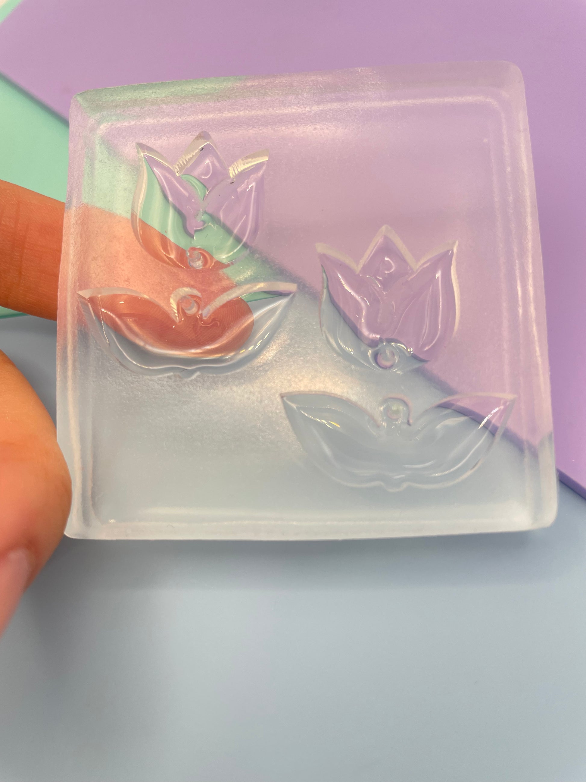 Although colored silicone molds with mica or glitter are very attractive, we usually don't recommend them because clear silicone molds give you a better vision as to what's going on inside e.g. trapped bubbles and so are more practical for resin artists. However, if you would like to get a colored mold, we have the pigment needed. Please contact us for more details.