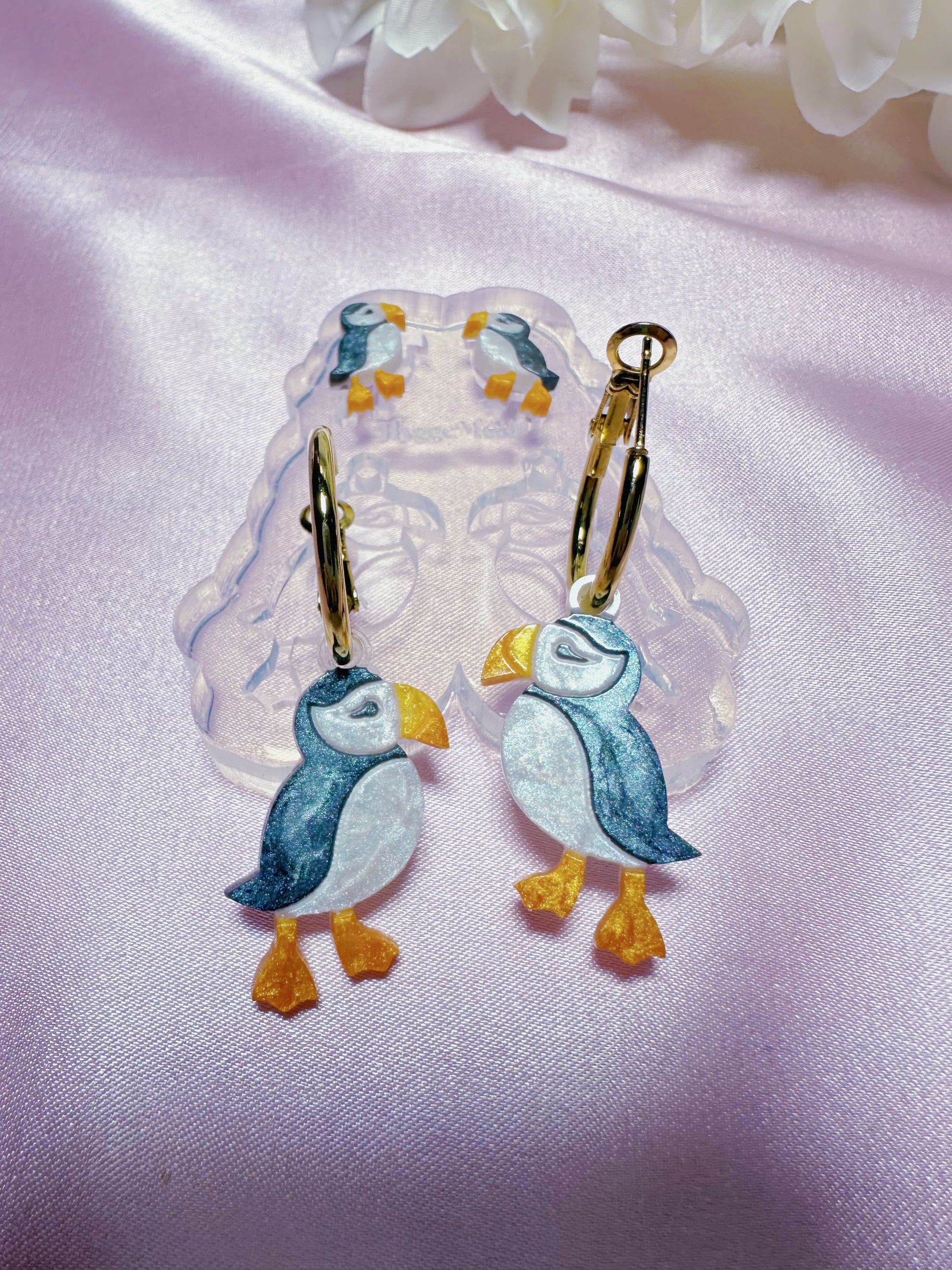 Small Puffin Bird Stud Dangle Earring Mold Palette