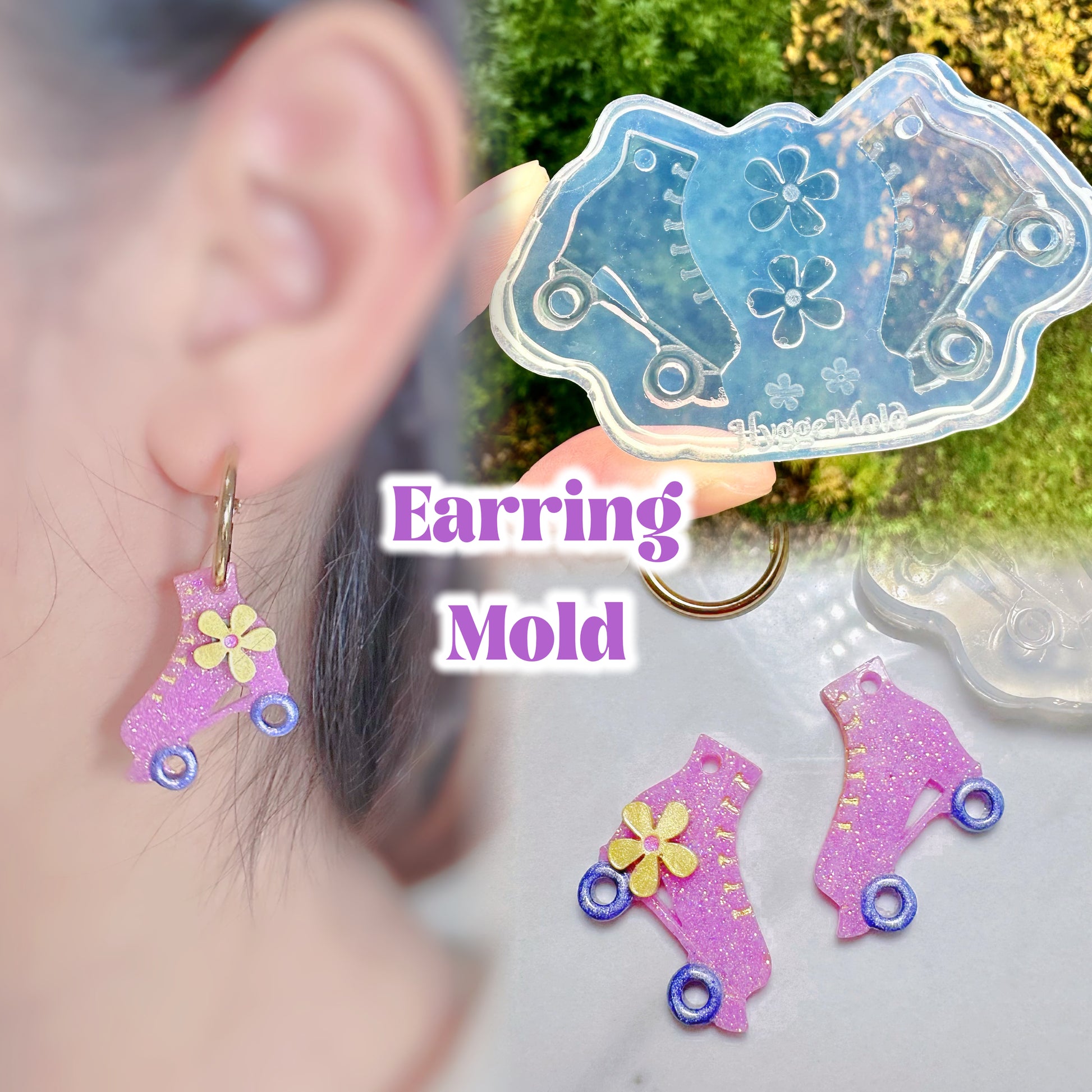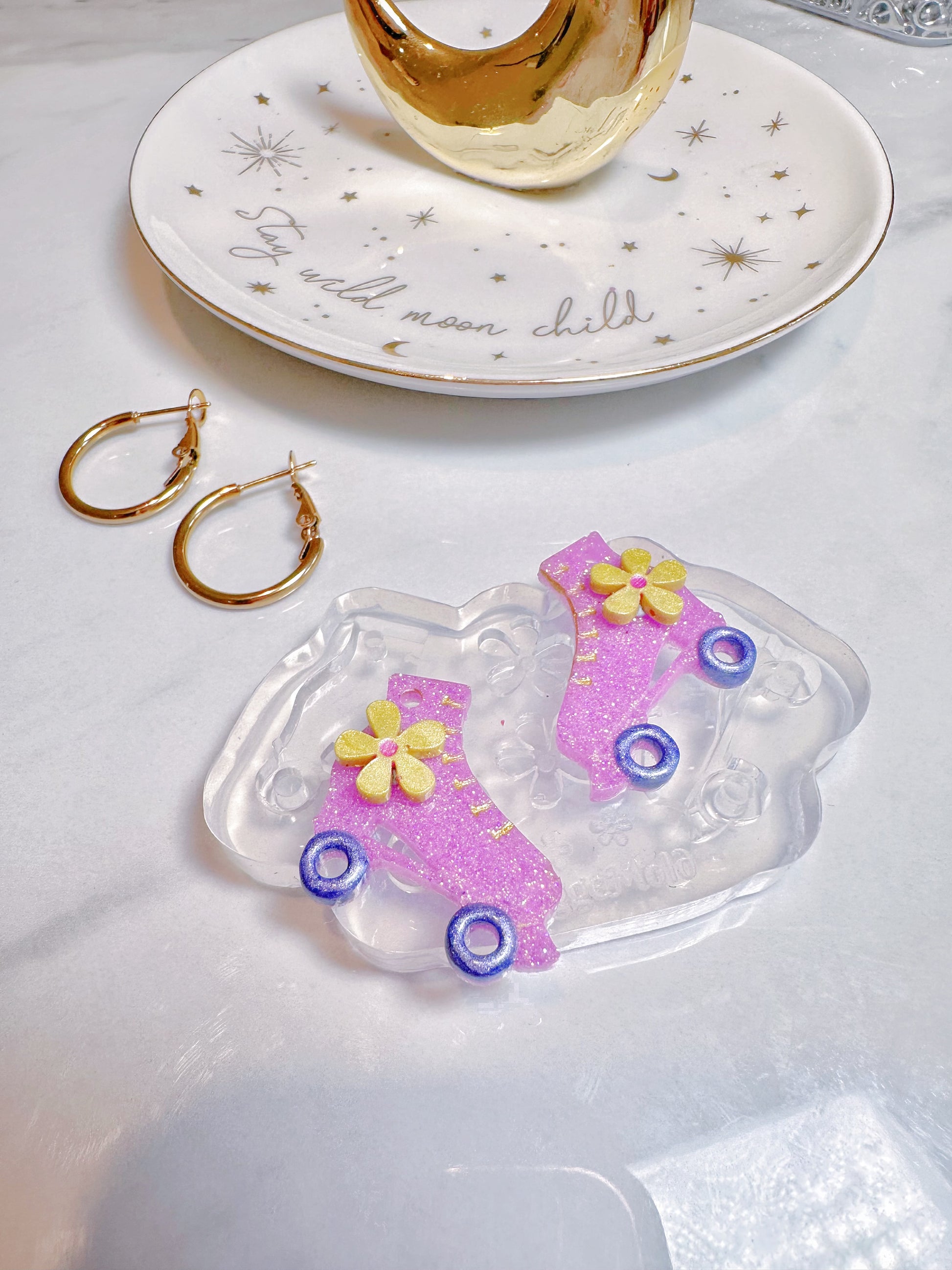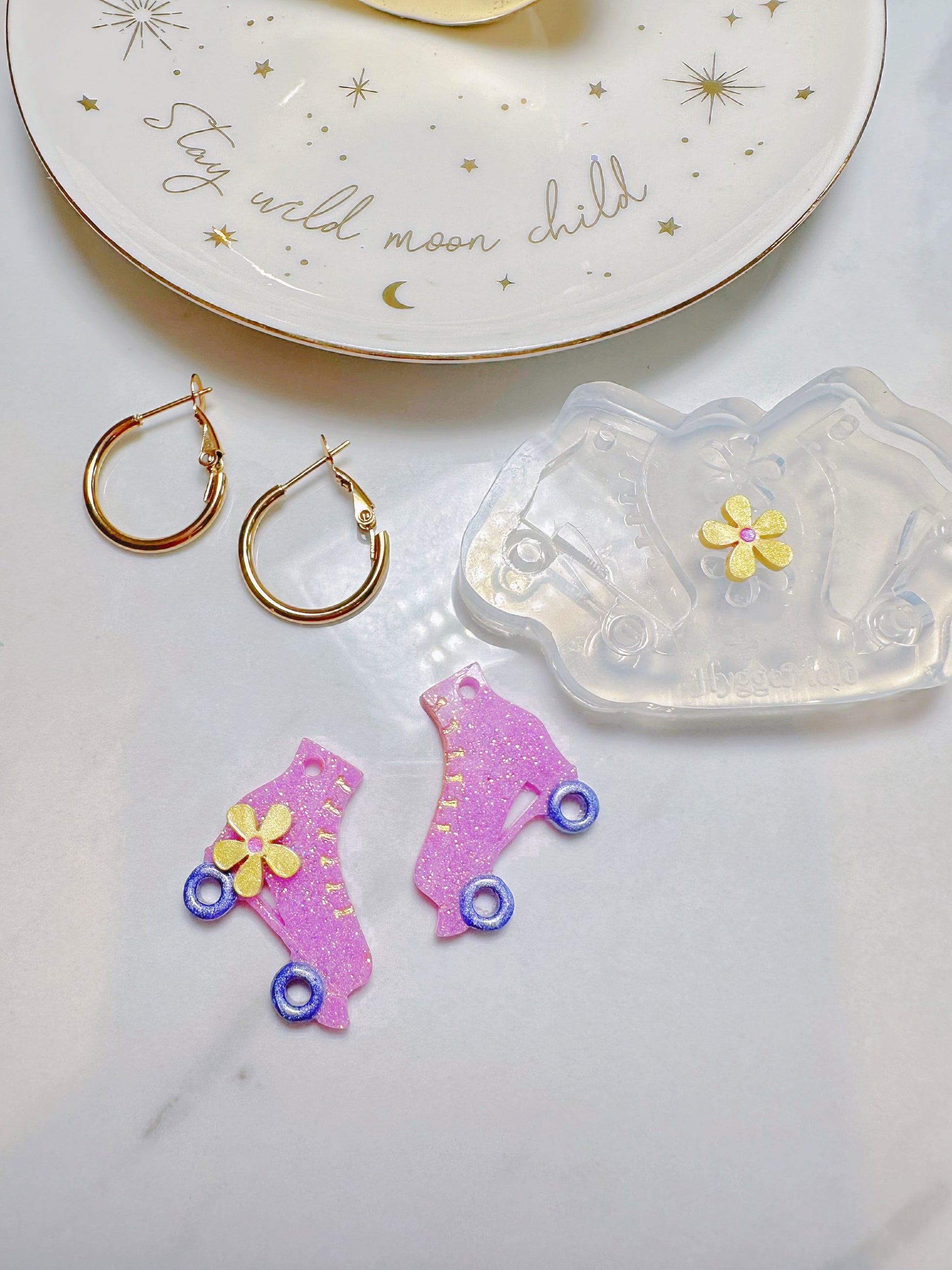 Small Roller Skate Shoes with Flower Hoop Earring Mold Dangly Charm Hoop Earring Mold