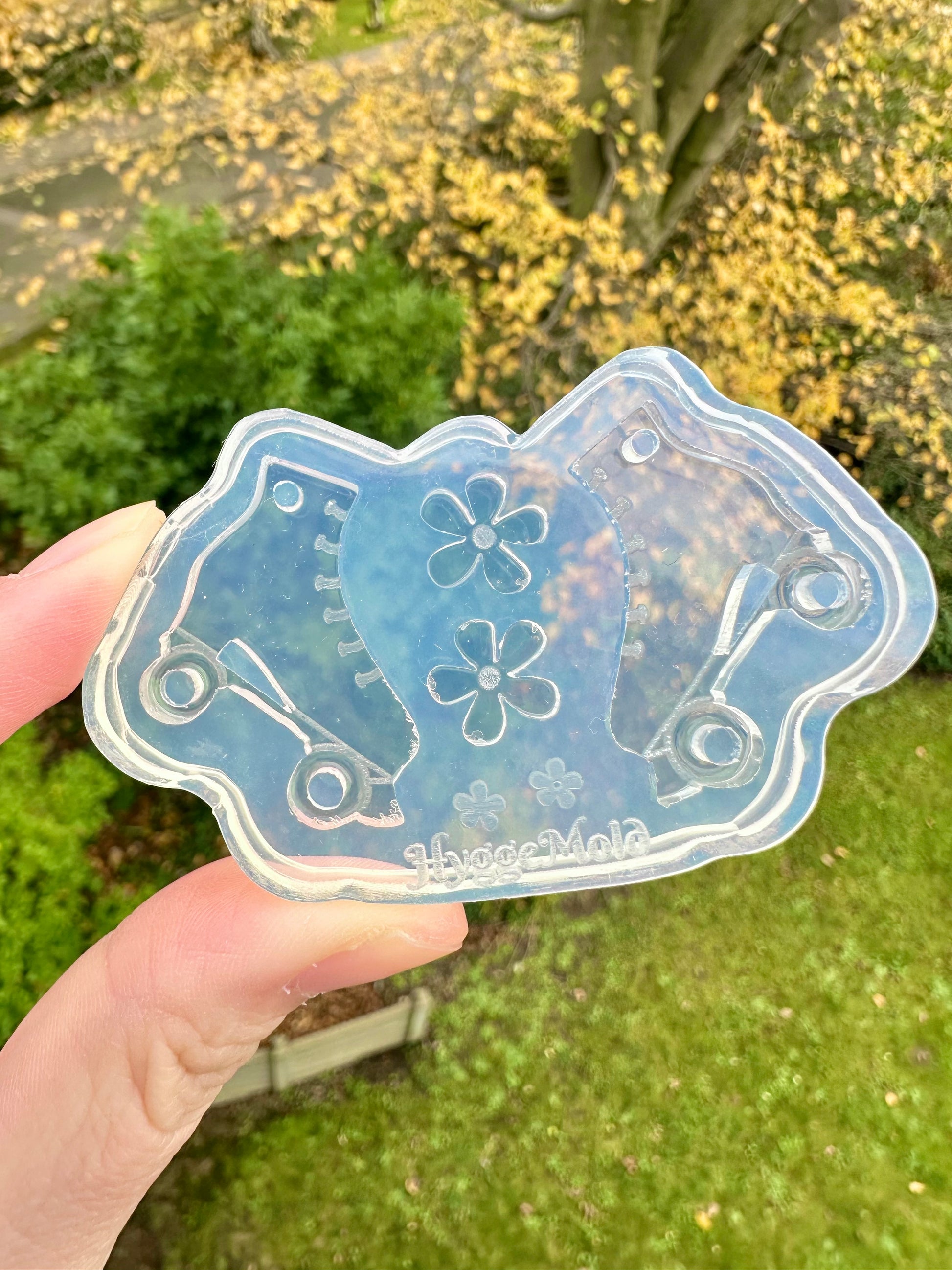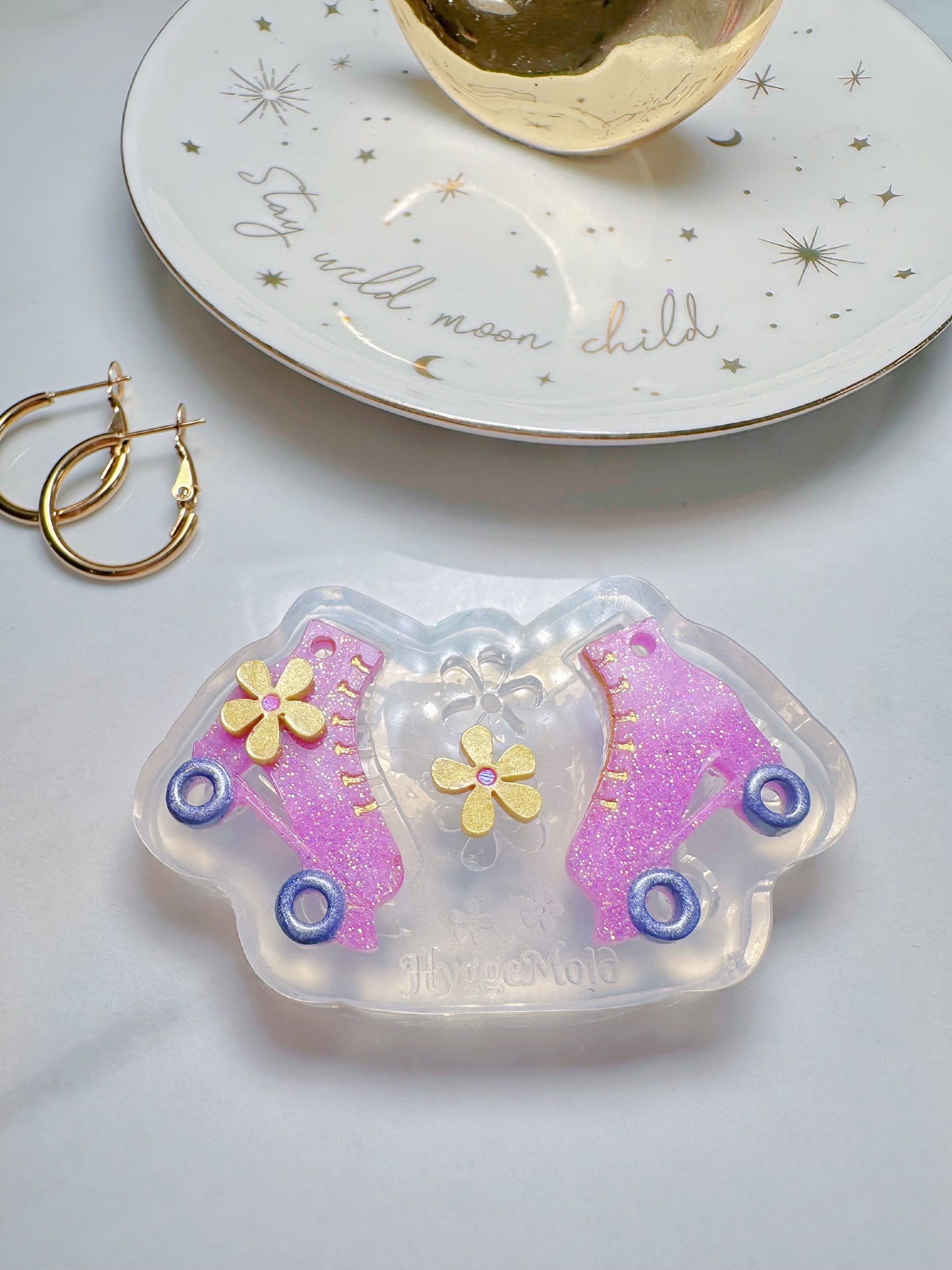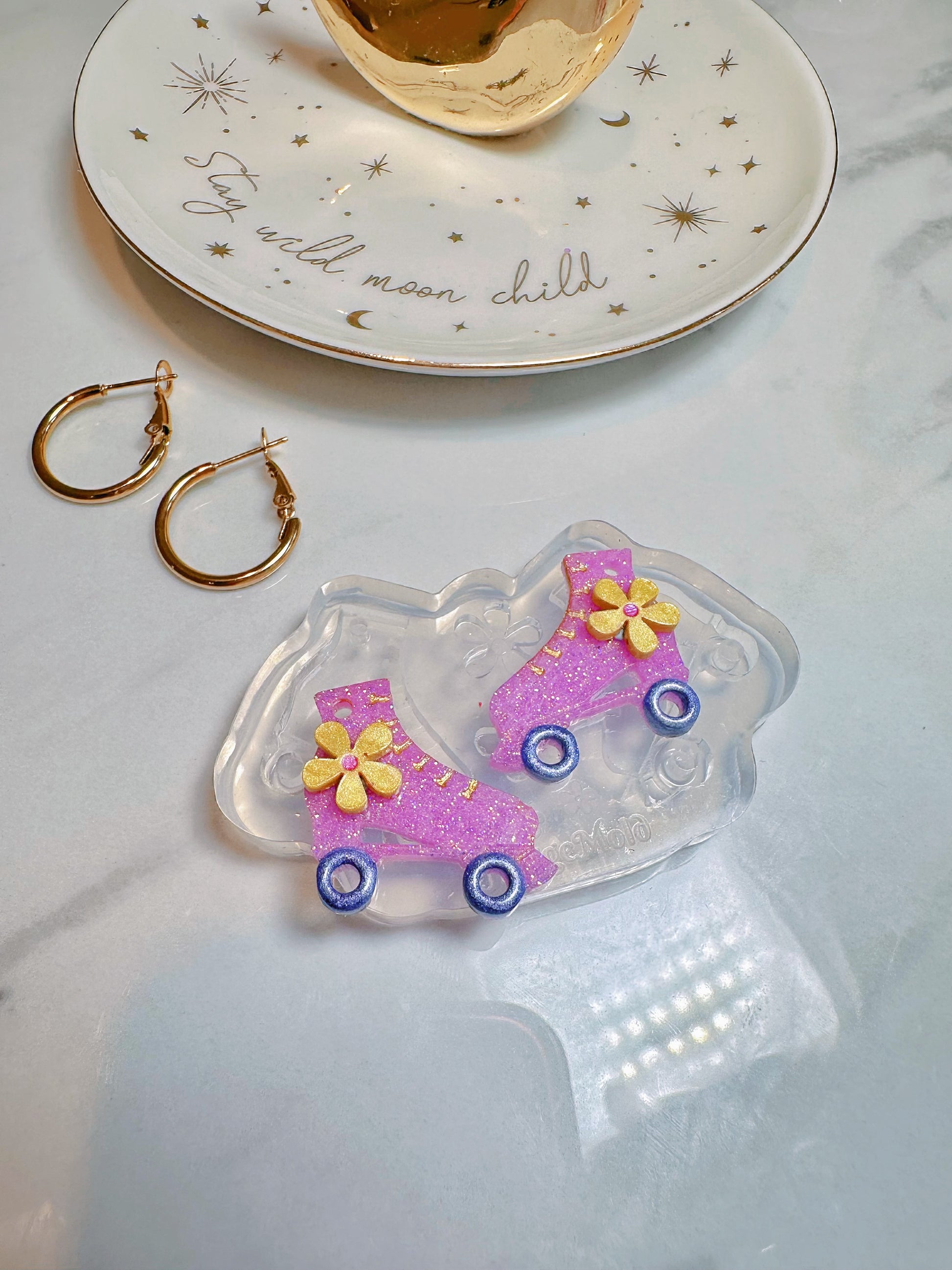 Small Roller Skate Shoes with Flower Hoop Earring Mold Dangly Charm Hoop Earring Mold
