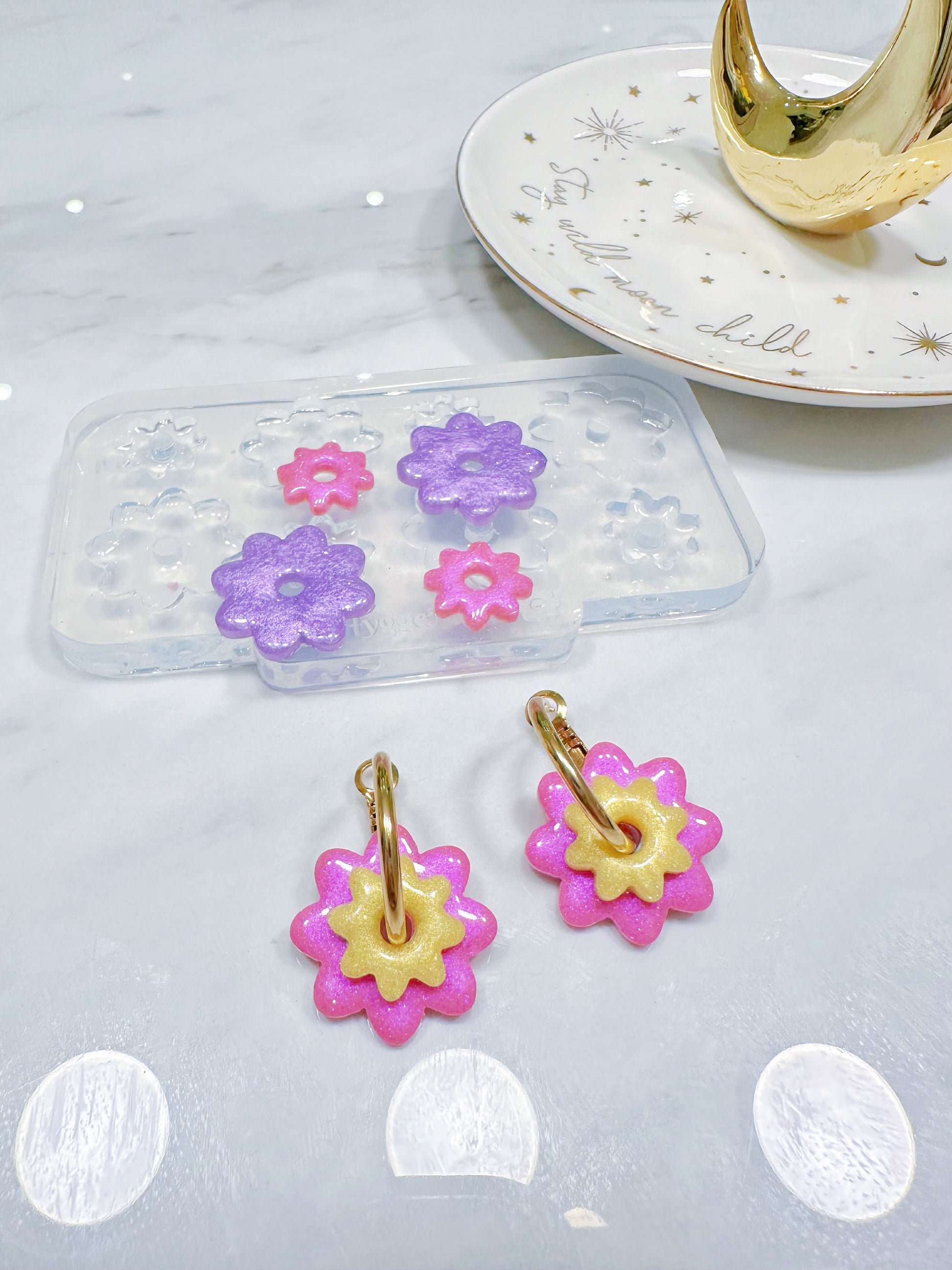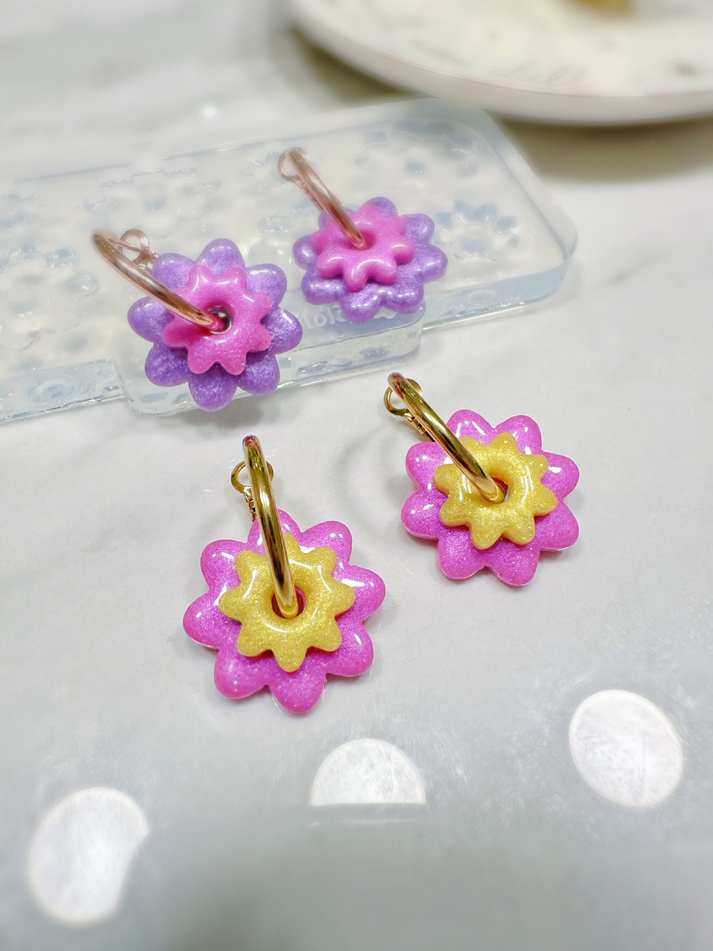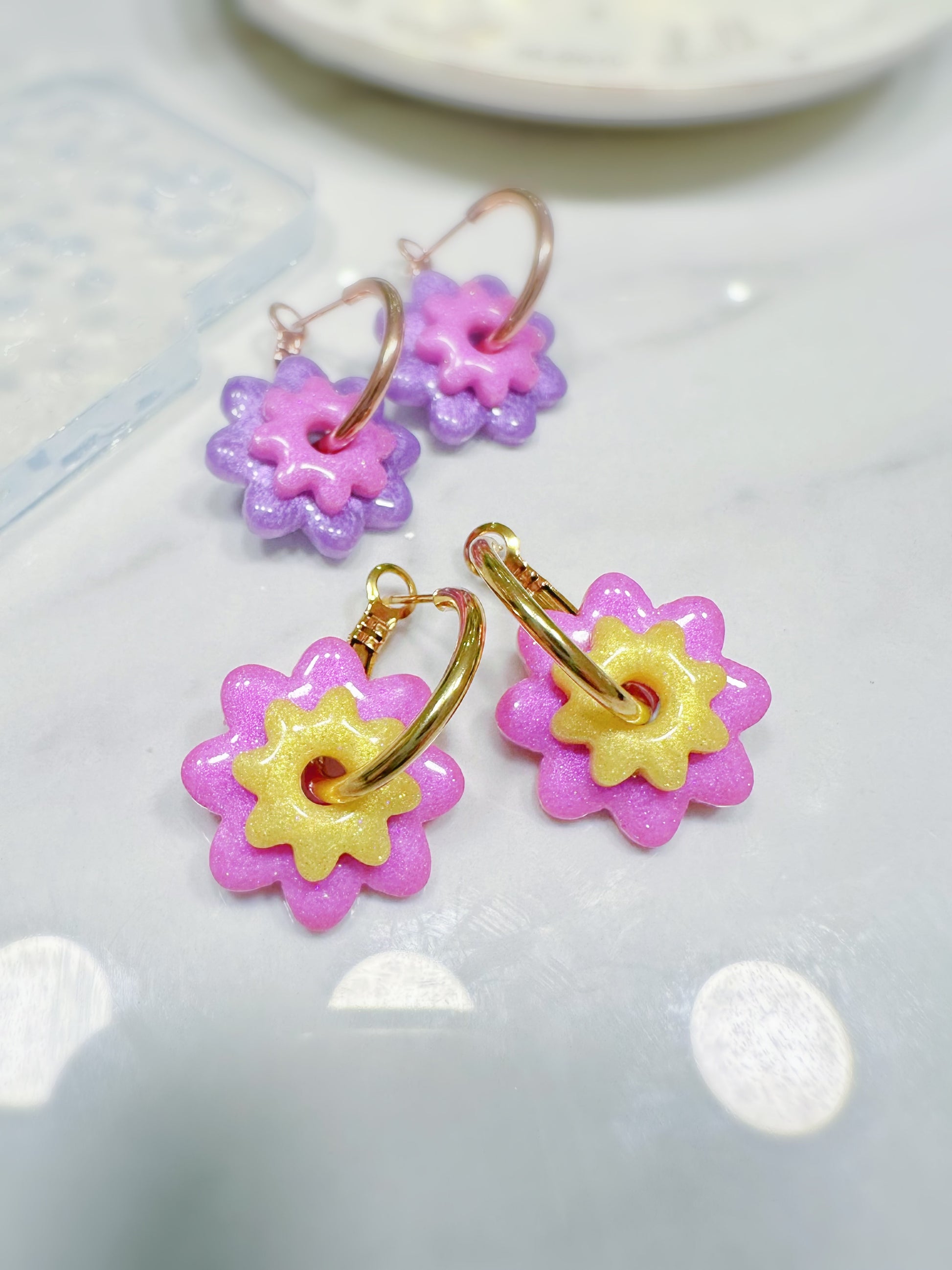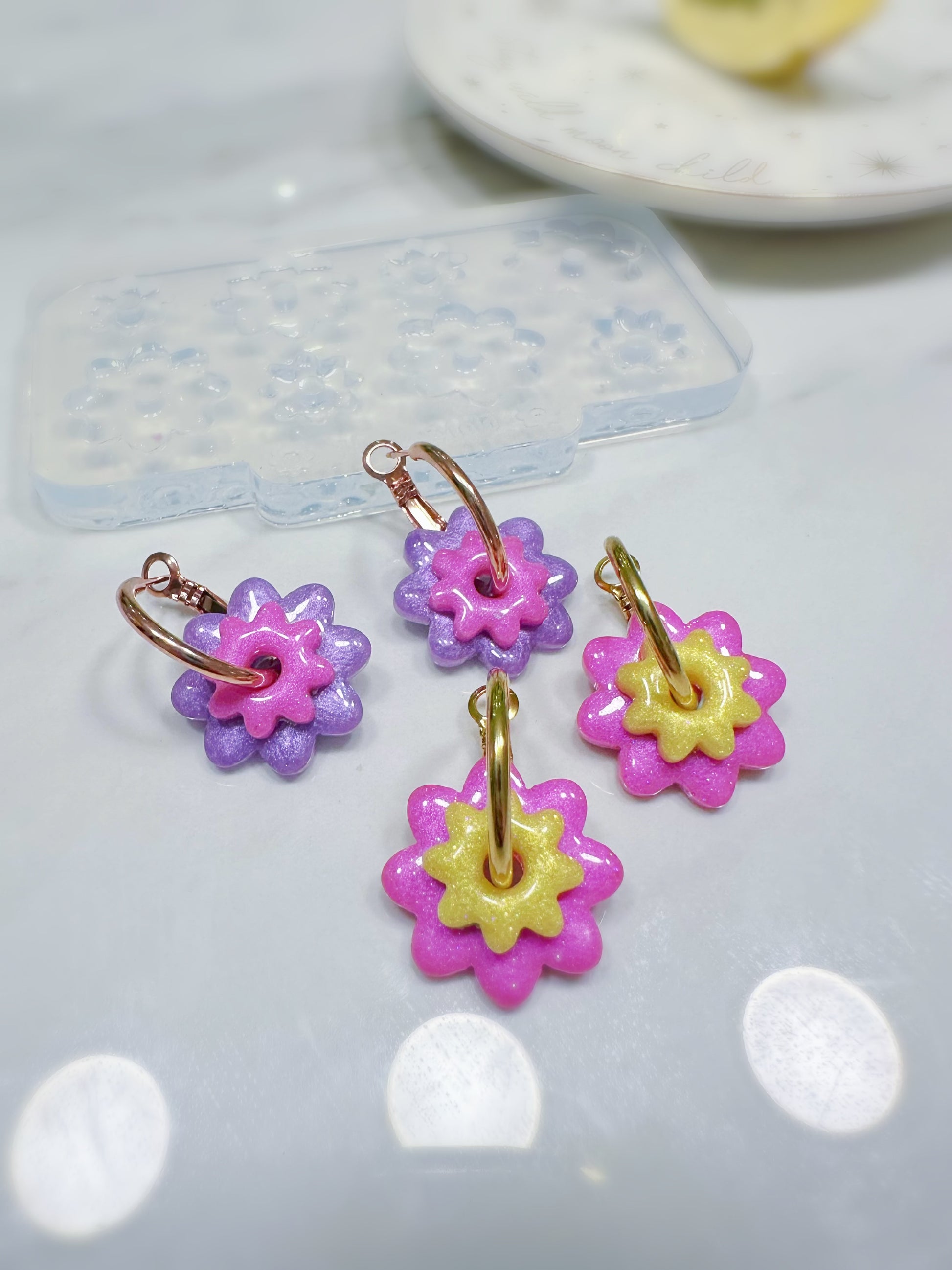 Stacked Predomed Daisy Flower Dangly Charm Hoop Earring Mold