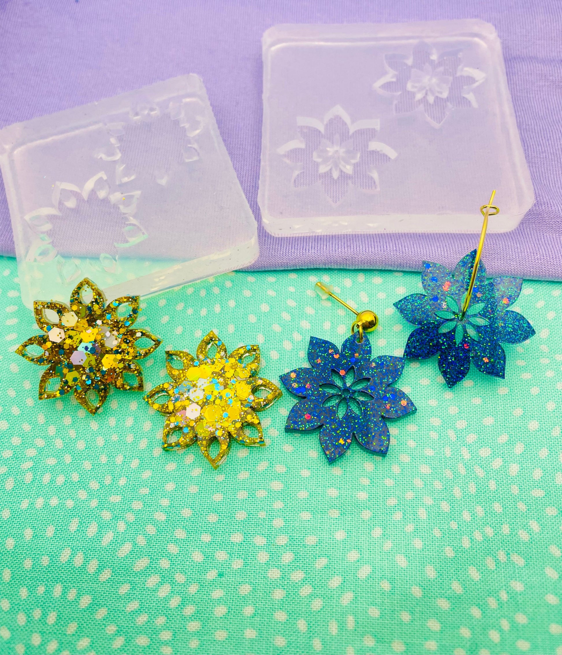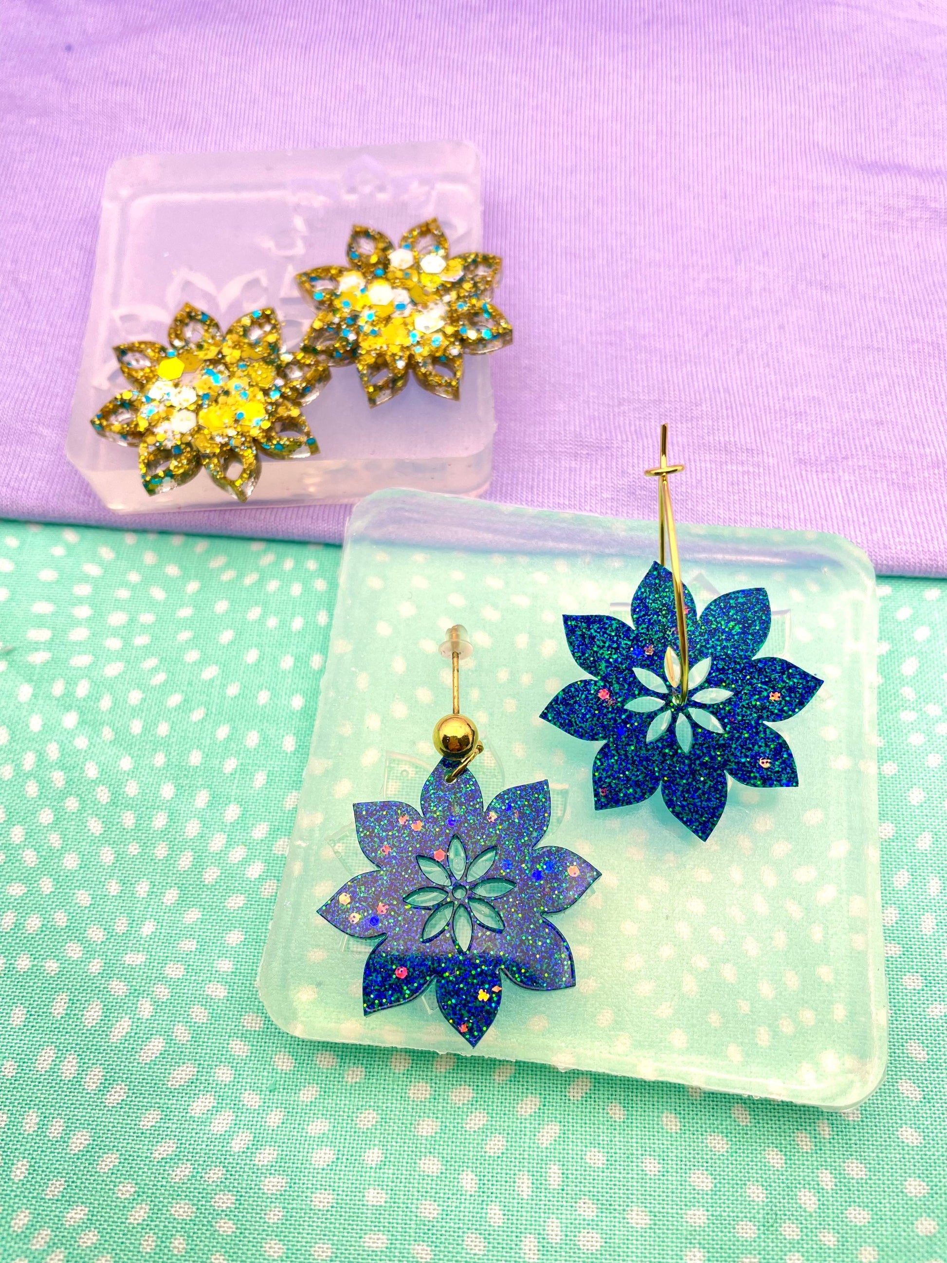 Sunflower Dangle hoop Spinner Earring Mold