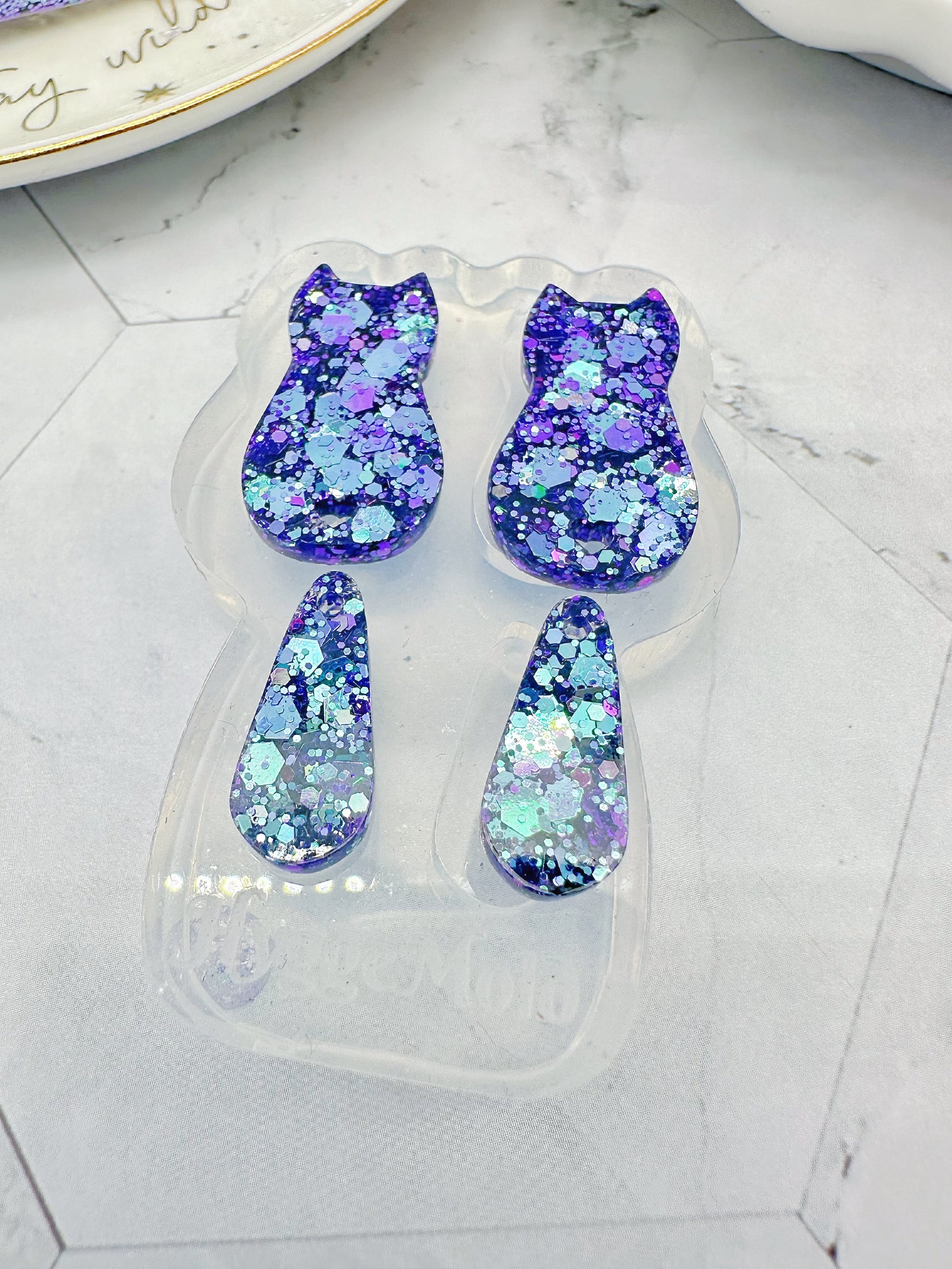Swinging Cat Tail Earring Mold sitting cat silhouette silicone mould