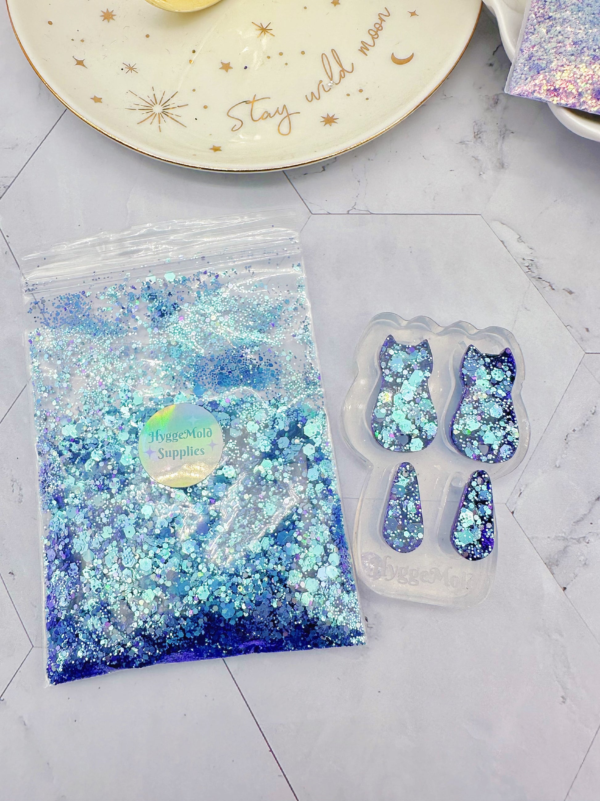 Although colored silicone molds with mica or glitter are very attractive, we usually don't recommend them because clear silicone molds give you a better vision as to what's going on inside e.g. trapped bubbles and so are more practical for resin artists. However, if you would like to get a colored mold, we have the pigment needed. Please contact us for more details.