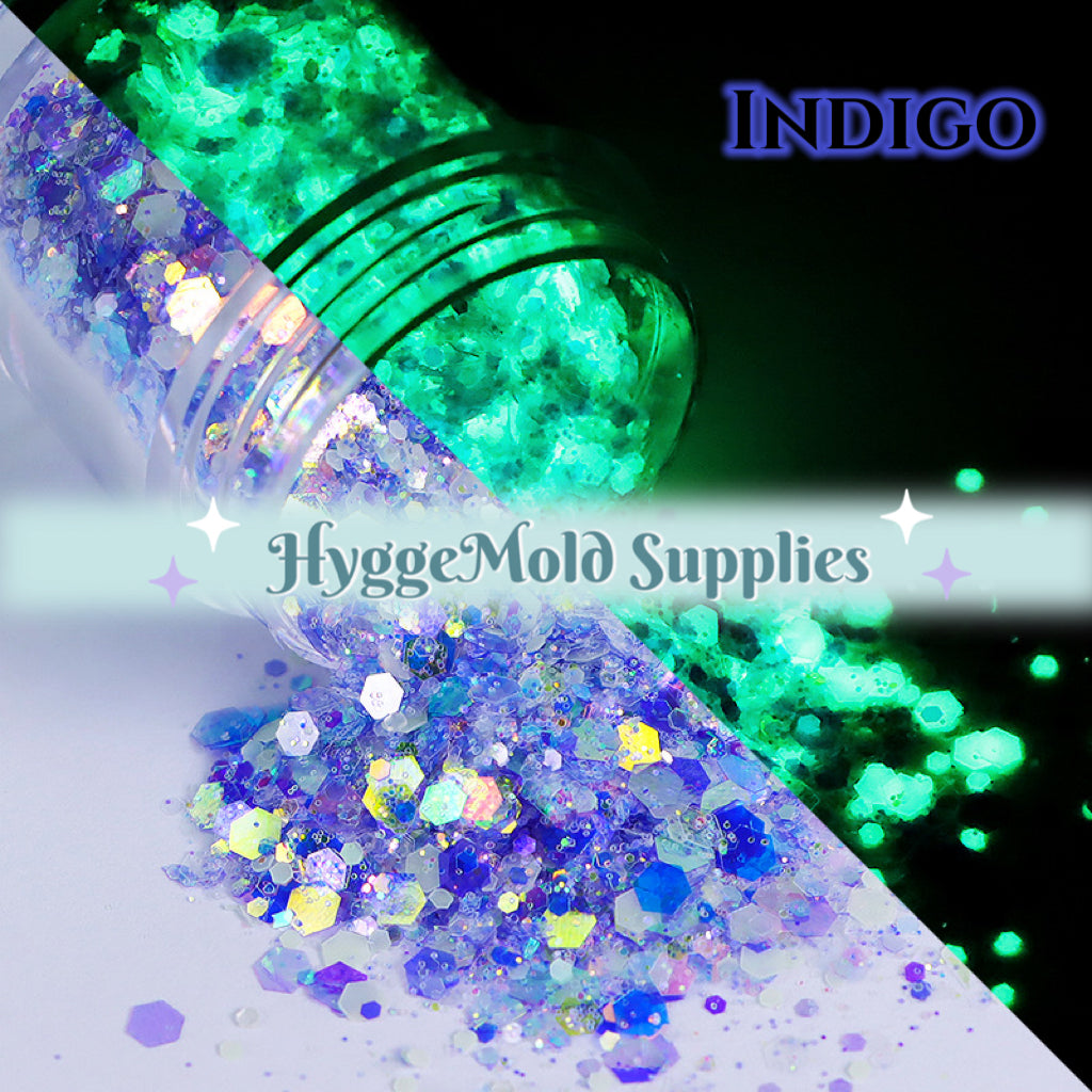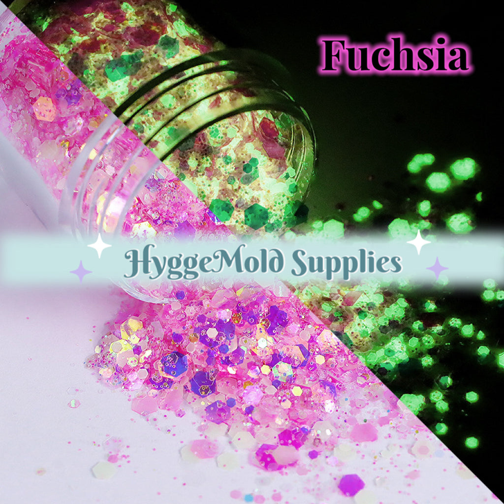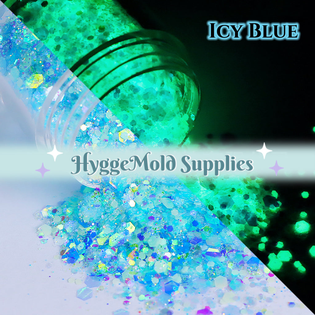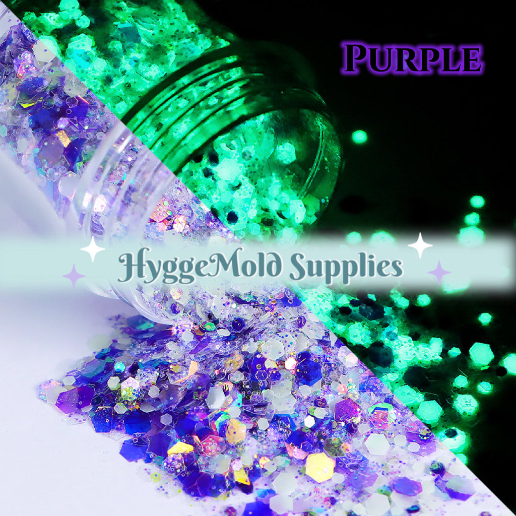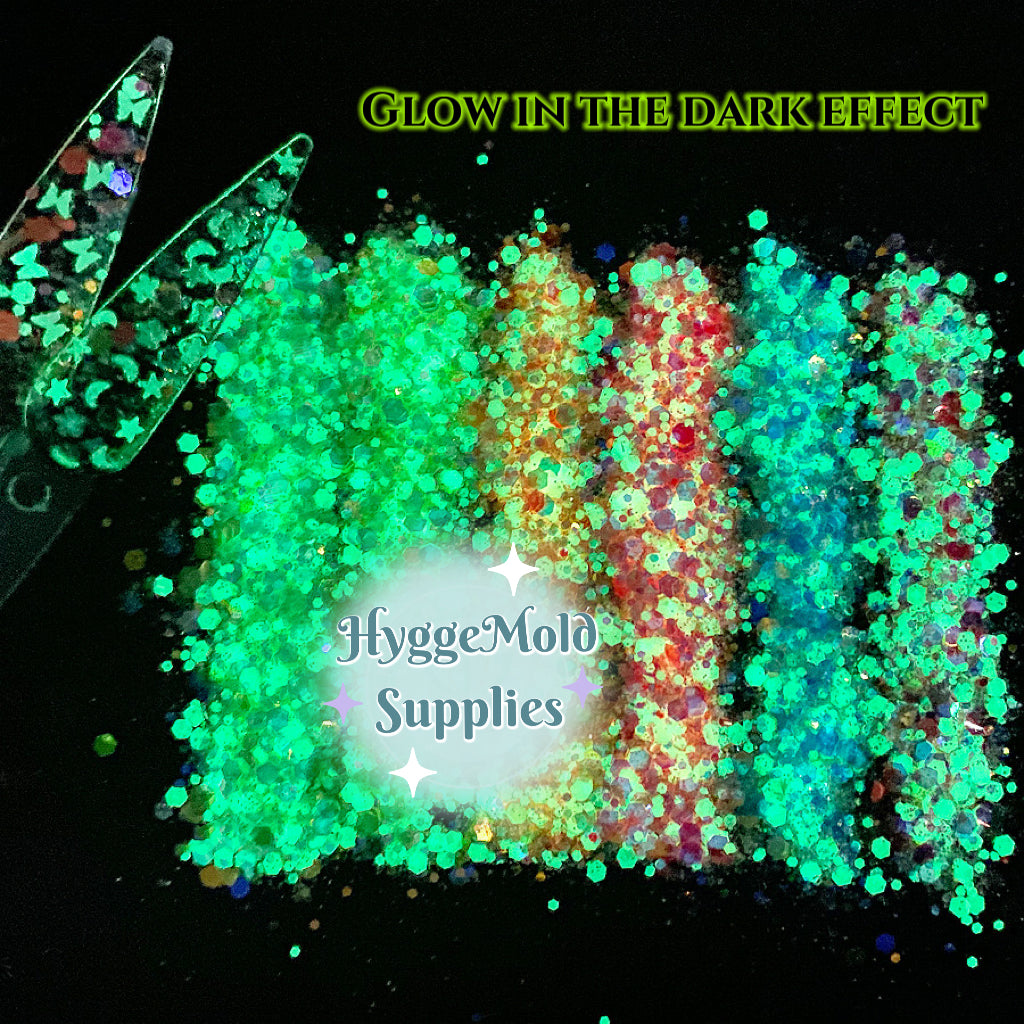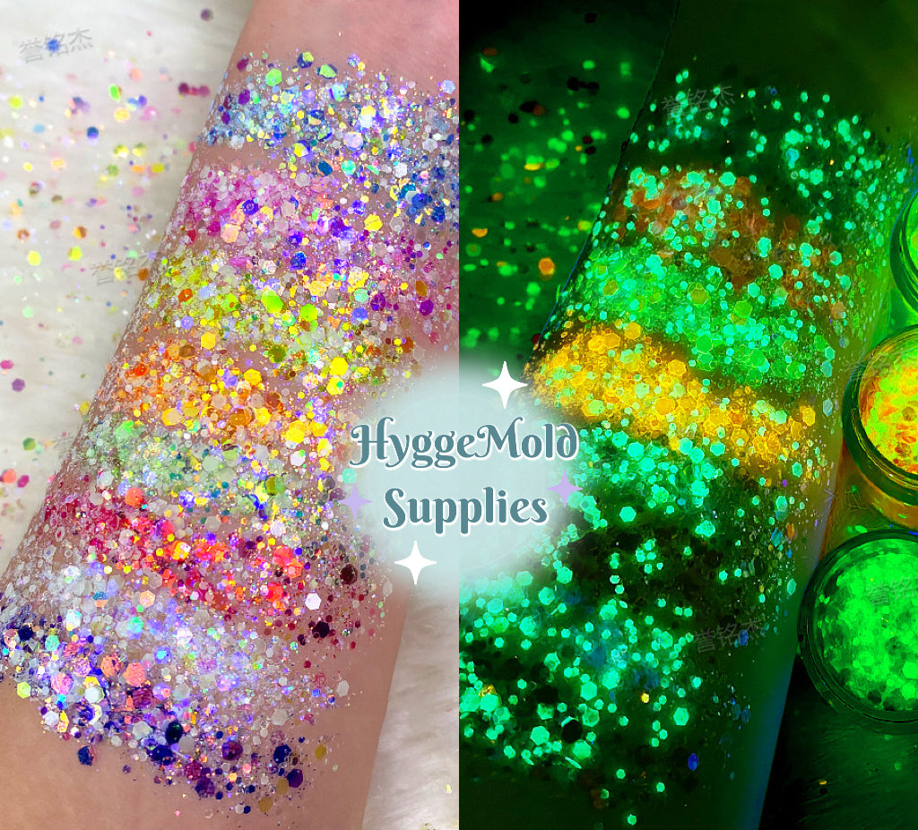 Glow In the Dark Iridescent Chunky Glitter Mix in a tub